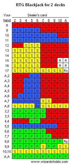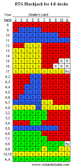 Seuraavat taulukot näyttävät reaaliaikaisten kasinoiden perusstrategiat kahdelle ja 4–8 pakalle.