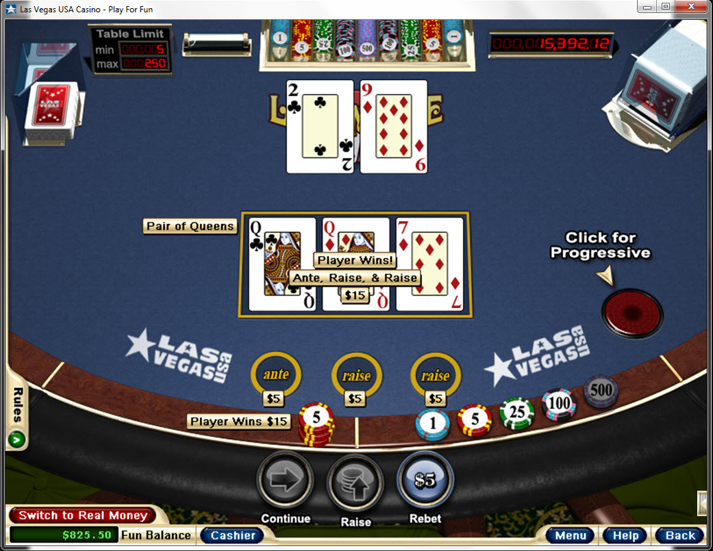 Pokerimuunnelmassa on liberaali Las Vegasin versio säännöistä, jossa pelaaja tarvitsee vain voittosuoran voittaakseen Ante-panoksen. Tämä johtaa 2,04 %:n talon etuun.