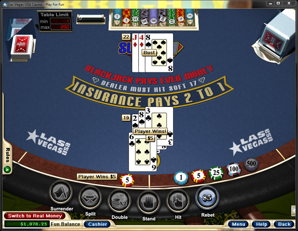 Minusta RTG-ohjelmiston ärsyttävin asia on se, että sääntöruudut eivät osoita, kuinka monta pakkaa Blackjackissa käytetään, eikä kukaan tukitiimissä tunnu koskaan tietävän oikeaa vastausta. Pelattuani RTG-kasinoilla yli vuosikymmenen uskon kuitenkin vahvasti, että useimmat kasinot päättävät käyttää kuutta pakkaa.
