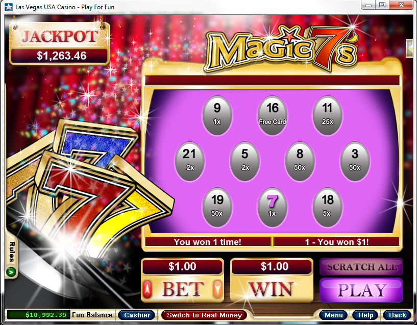 RTG tarjoaa neljä raaputusarpapeliä, kolme yllä olevassa kuvassa näkyvää sekä Magic 7:n . Sääntöjä ei ole mitattu, joten en tiedä, mitä vastaan olet matemaattisesti. Joten raaputusarpojen kanssa olet omillasi.